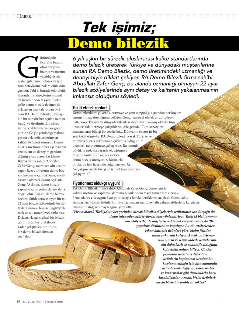 Kuyum Time dergisinde Ra Demo ailesi olarak yer alan görüşmelerimiz.